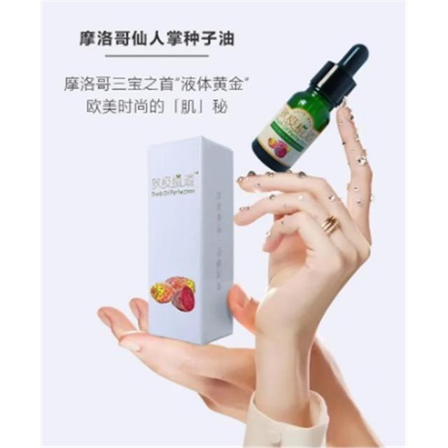 摩洛哥三宝之首“液体黄金”仙人掌种子油,欧美时尚的“肌”秘 产自摩洛哥南部阿卡迪亚市的仙人掌种子油,产量极低(1滴油等于300颗仙人掌种子),常作为高端基础油被欧美高端护肤品牌采用,可局部涂抹于衰老与受损皮肤,长期使用可有效缓解眼部面部皱纹,淡化痘印,淡化疤痕。