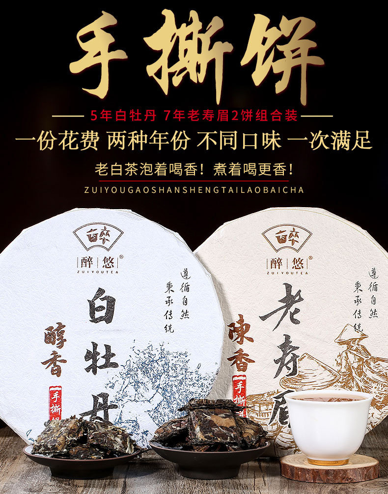 5年白牡丹加7年老寿眉 福鼎白茶老白茶太姥山福鼎白茶饼茶叶共300g