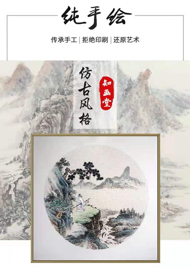 国画纯手绘山水画三尺斗方卡纸画客厅书房中式装饰画山水小品